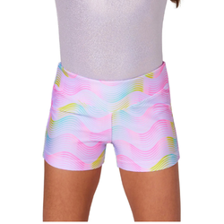 Ride the wave in style with the Swell Short from the Sunset Wave collection. Made from a flexible blend of Nylon and Lycra, this short offers the perfect combination of comfort and shimmer with its foil fabric accents. Featuring a flattering low V-shaped front waistband and a straight back waistband, it provides both style and support. Pairs perfectly with any leotard from the Sunset Wave collection.